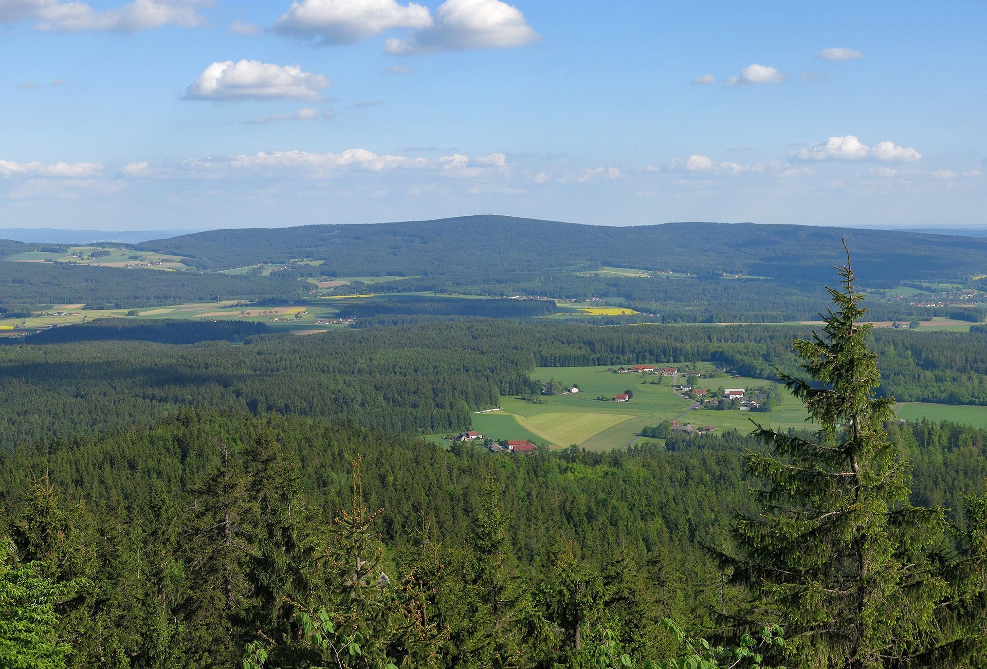 Im Norden liegt die Mittelgebirgslandschaft des Frankenwaldes, von der Geologie her Grauwacke und Tonschiefer, geprägt vorwiegend von 3 Landschaftselementen: gerodete Hochflächen, bewaldete Hänge und Wiesentäler. In Richtung Oberpfalz schließt sich rechts der Autobahn Nürnberg-Berlin das Fichtelgebirge an. Mit seinen granitischen Erhebungen ist das Fichtelgebirge Teil der Europäischen Wasserscheide. Hier findet sich mit dem Schneeberg mit 1053 m der höchste Berg Oberfrankens.